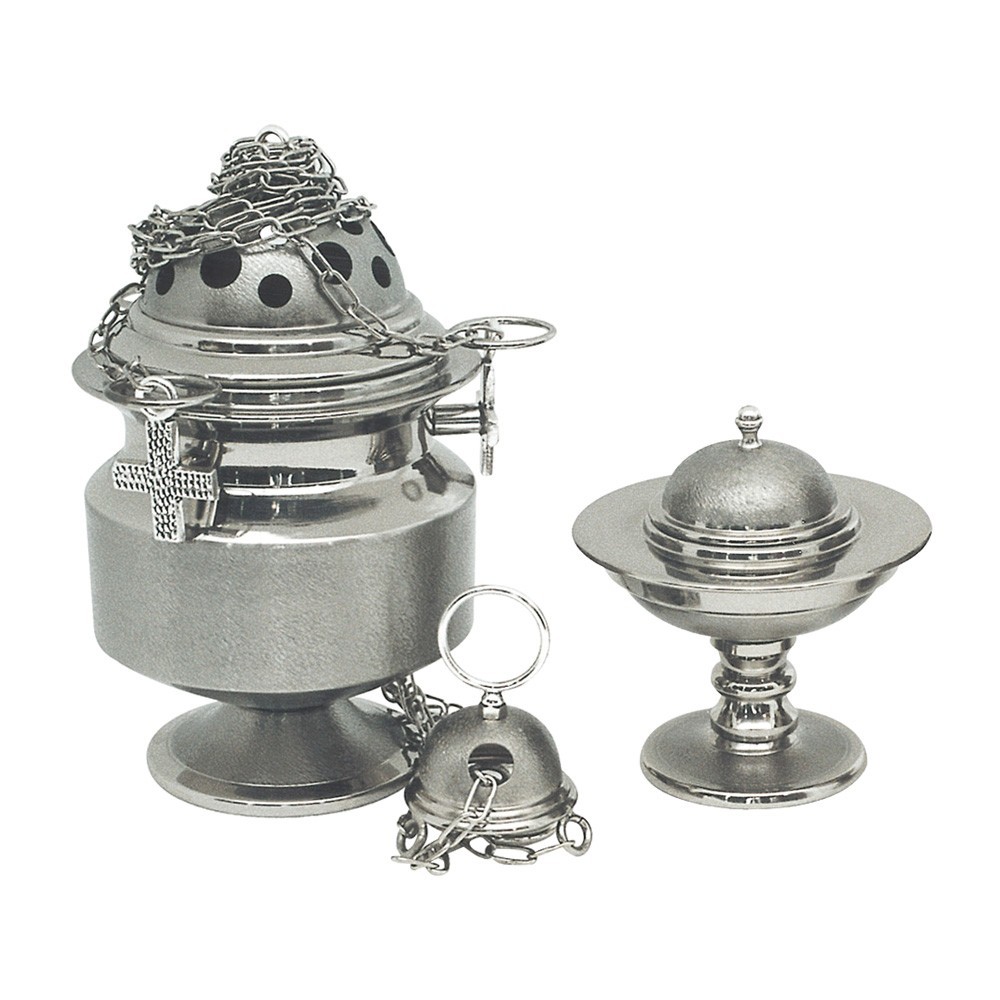 Thurible and boat in silver-plated brass.