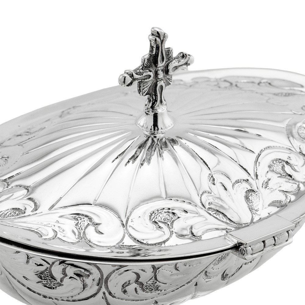 Boat for thurible made of nickel-plated brass, size: 18x6 cm.