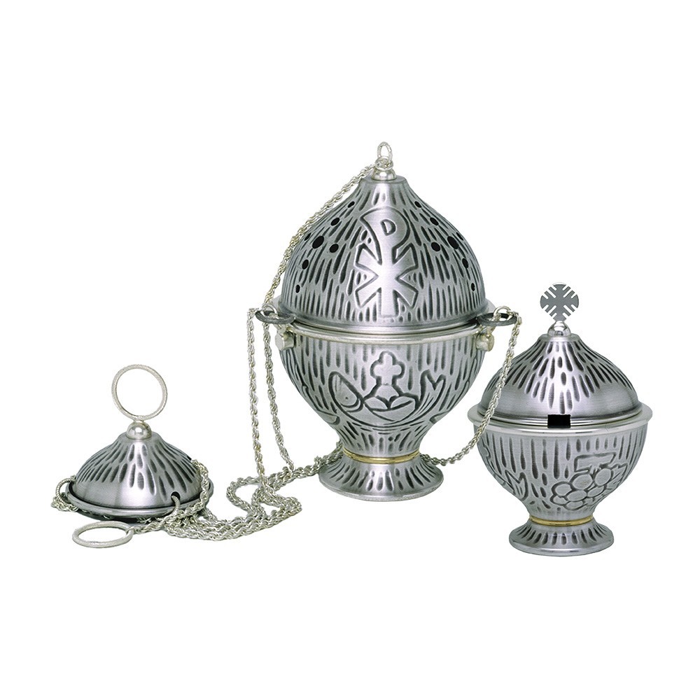 Thurible in nickel-plated brass. Size: 15.5x11.5 cm.