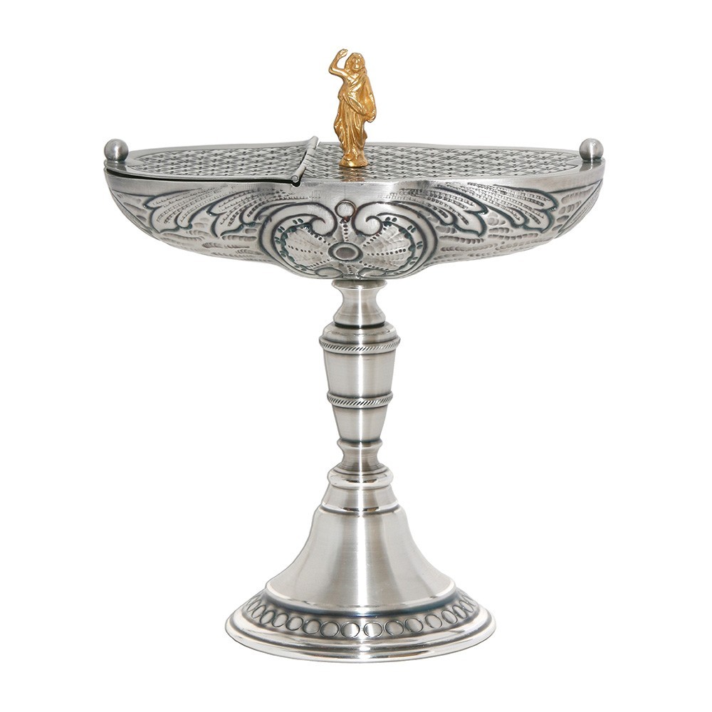 Boat for incense in nickel-plated brass. Size: 18x12 cm