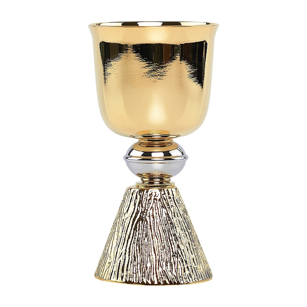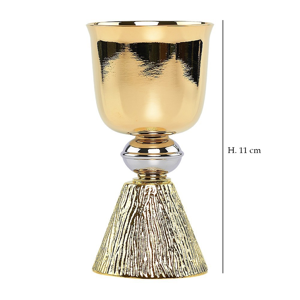 Communion chalice in 24k gold-plated brass, with hammered base and cup bottom.