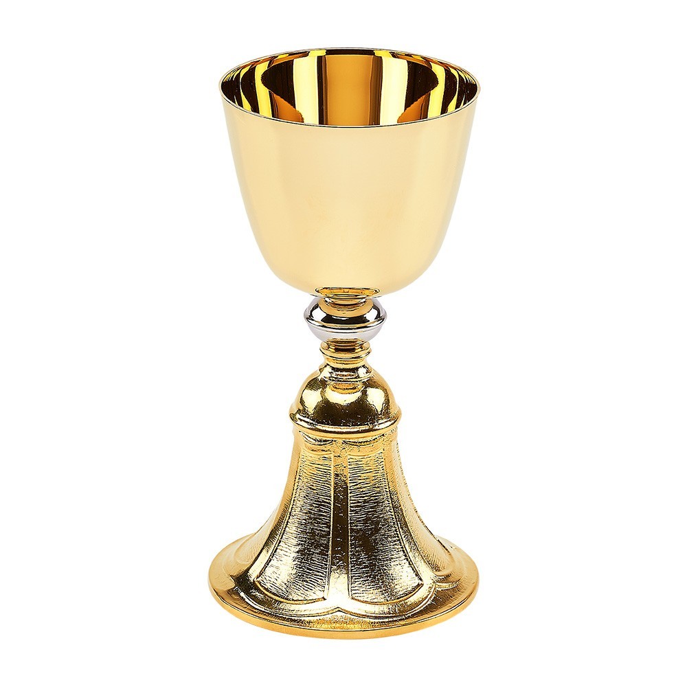 Chalice with base in gold cast brass. The chalice is 18 cm tall and its cup has a diameter of 9 cm.