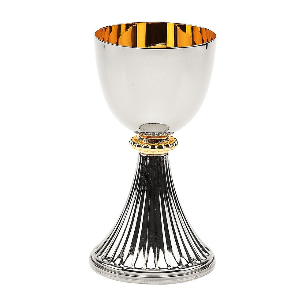 This chalice is made of silver nickel-plated brass, with gold finish inside the cup.