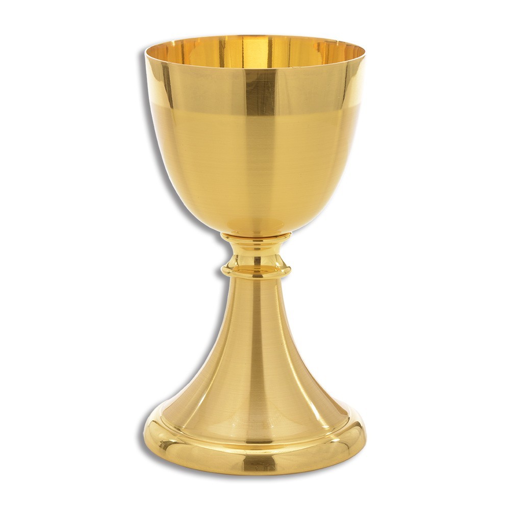 This chalice is made of golden brass and features a polished finish. Simple model with no decorations. The peculiarity of this chalice is the satin gold finish base that stands out from the rest of the chalice.