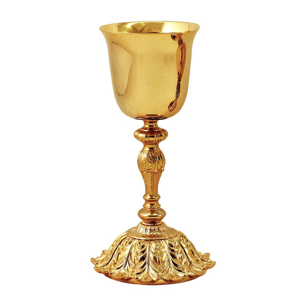 Chalice and Ciborium in 24k gold-plated brass with floral base.