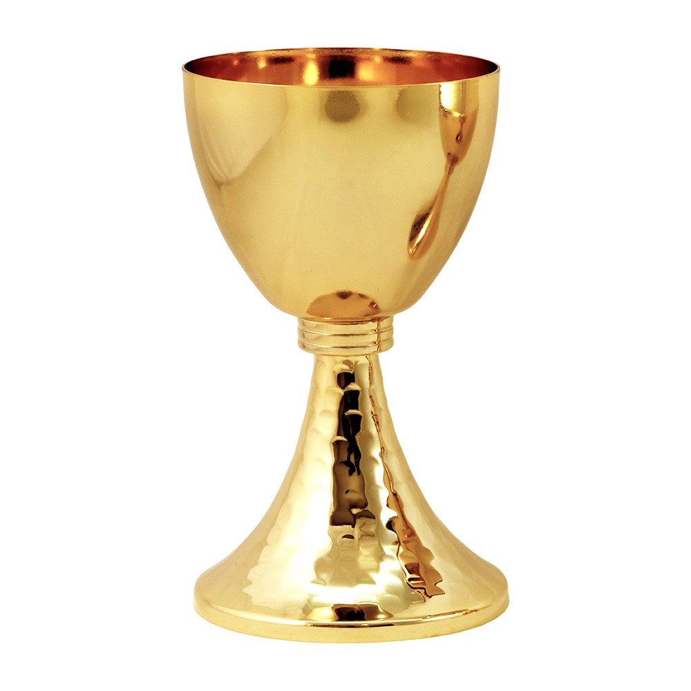Communion chalice in 24k gold-plated brass, with hammered base and cup bottom.