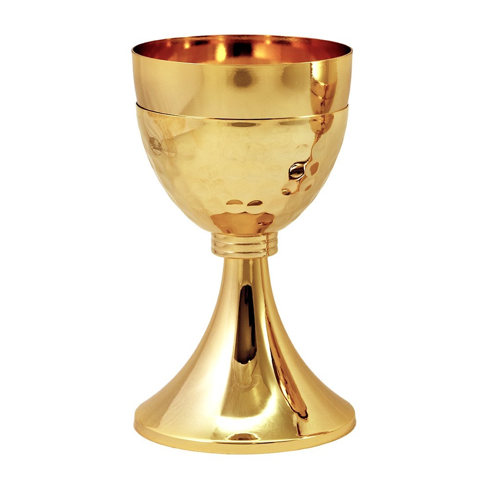 Communion chalice in 24k gold-plated brass, with hammered base and cup bottom.