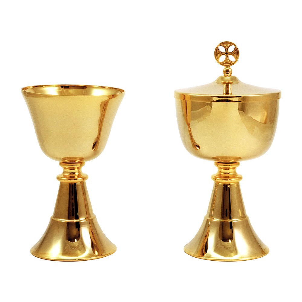 Liturgical set consisting of chalice and ciborium in gold-plated brass with a plain node.