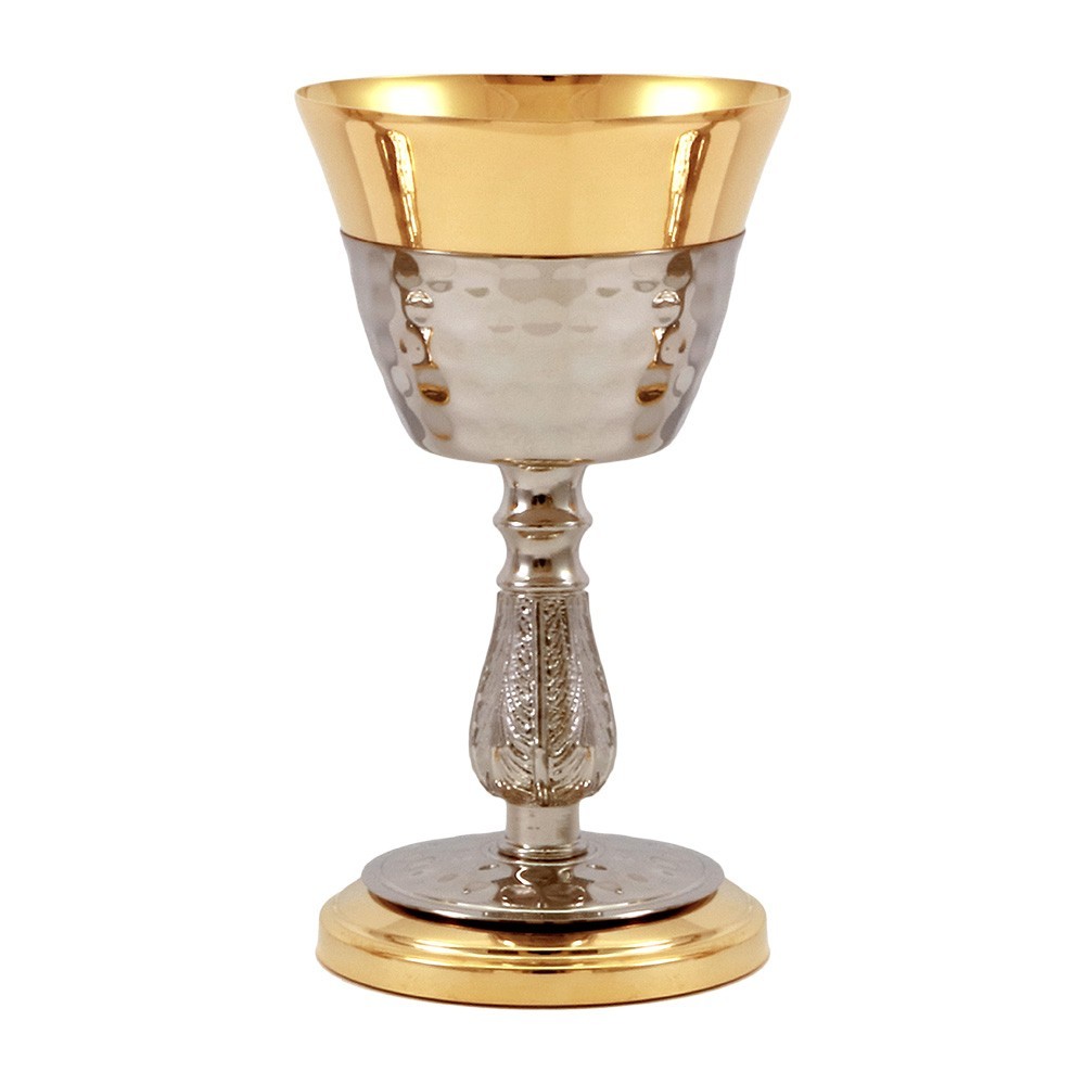 This mini chalice is 13.5 cm tall. The base and the bottom of its cup are crafted using a special hammering technique. The node is finely decorated with the casting technique.