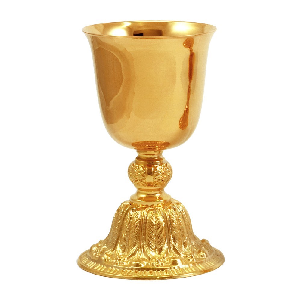 Mass chalice in gold-plated brass. This elegant church item features a base crafted using a particular artisanal casting technique and a node in Baroque style.