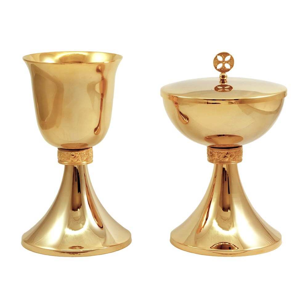Set of Chalice and Ciborium in Gold-plated Brass