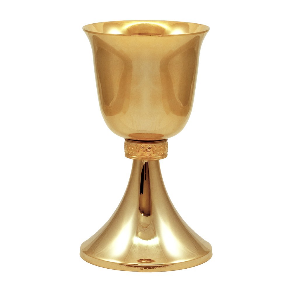 Chalice in golden brass with polished base and cup. Striped node.