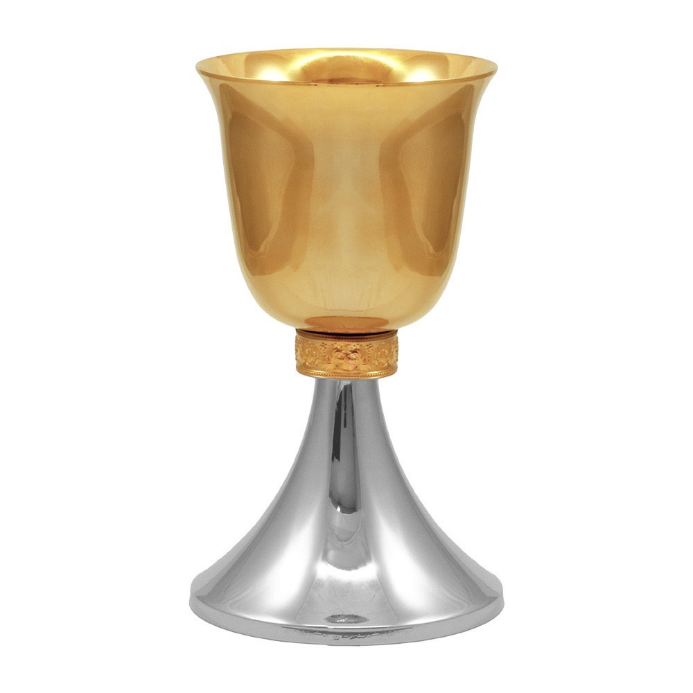 Mass chalice in gold and silver-plated brass with guaranteed 24k gold plating. A special feature is the cast node decorated with ‘Grapes and Vine Leaves’.