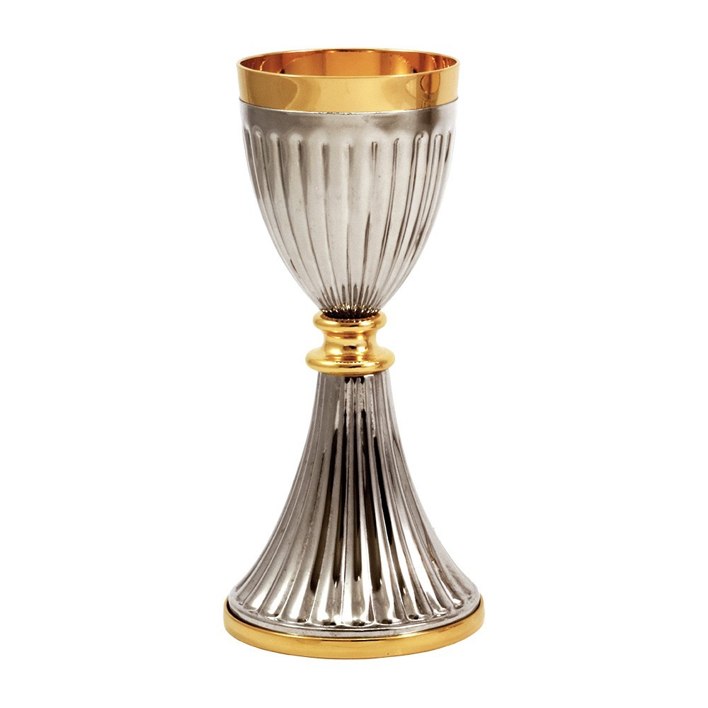 Chalice in two-tone brass with base and stem in silver finish with color contrasts.