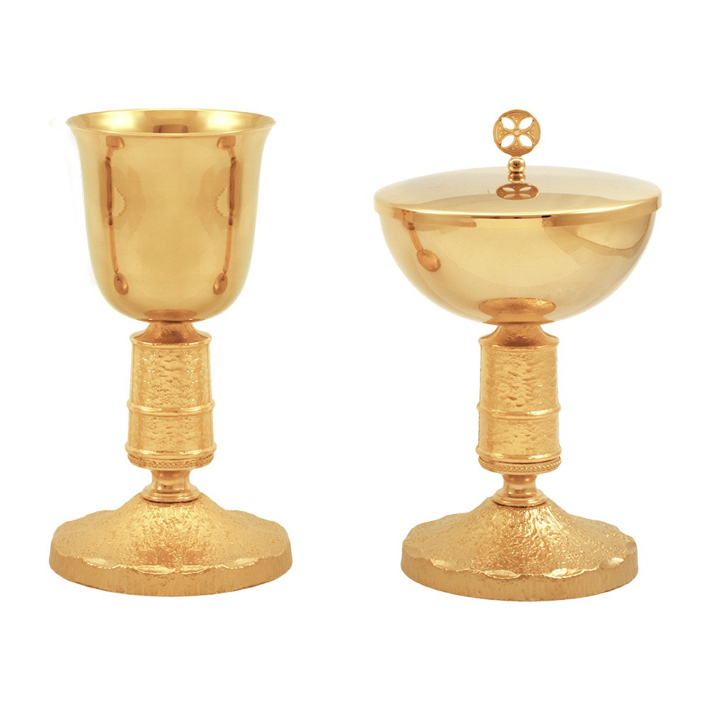 Set of chalice and ciborium in 24k gold-plated brass.