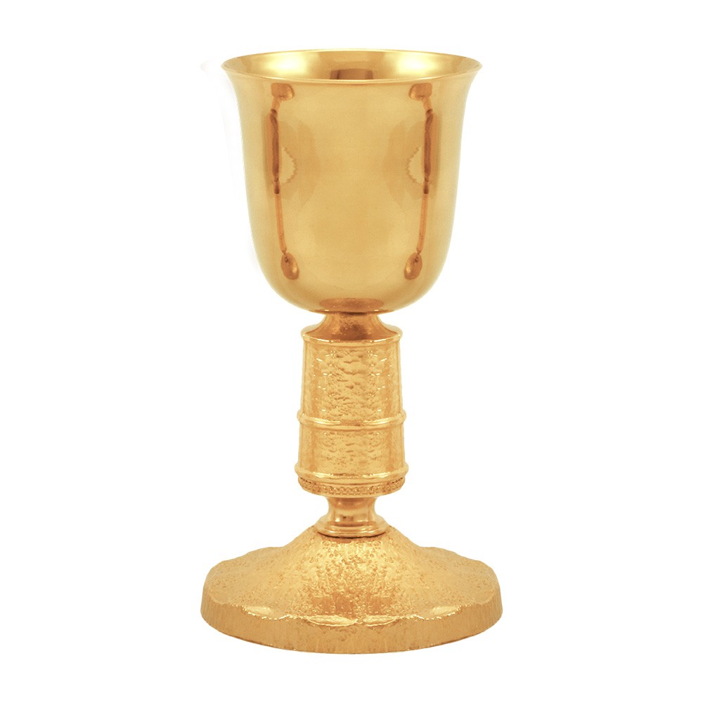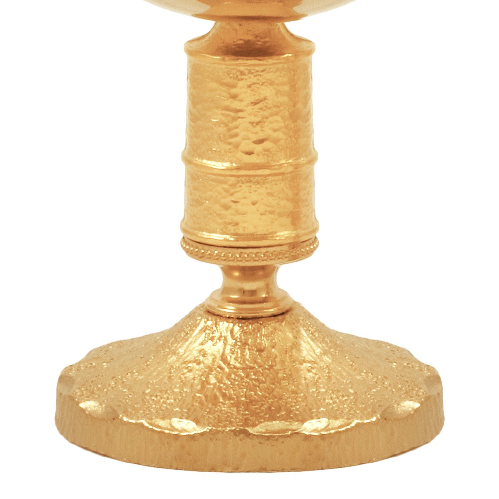 Communion chalice in 24k gold-plated brass, with hammered base and cup bottom.