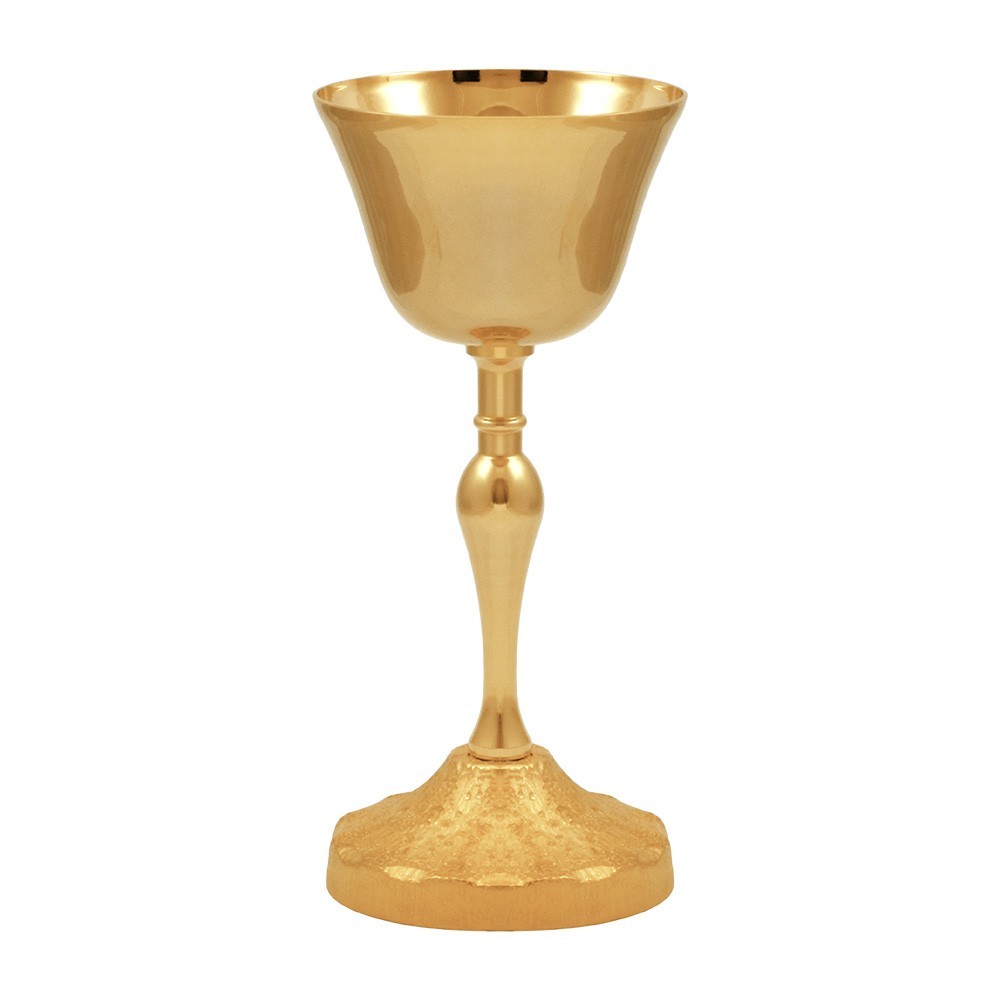 The chalice is entirely made of gold-plated brass and is 18 cm tall. Both base and node are decorated in Medievalis style.