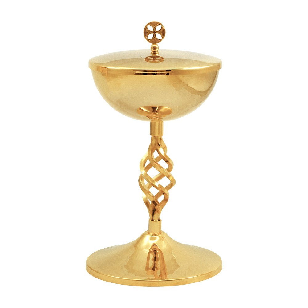 Chalice and ciborium in golden brass with striped node.