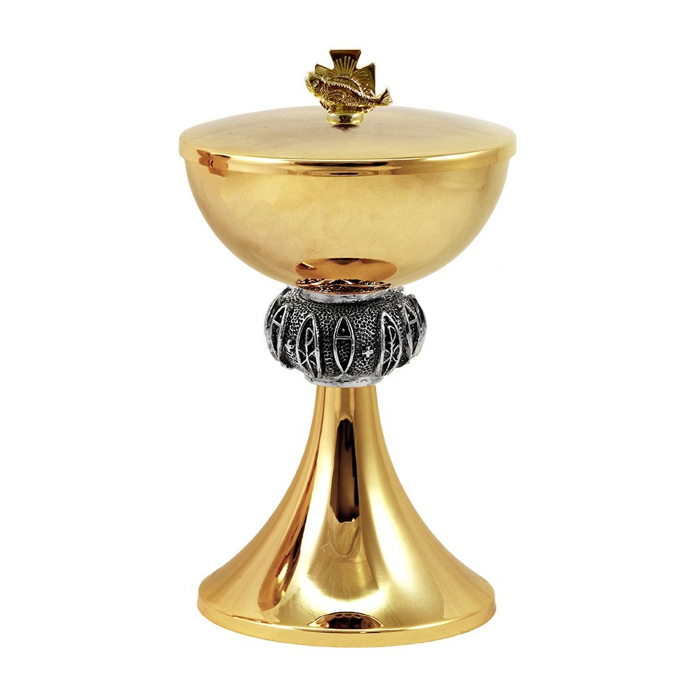 Set of Chalice and Ciborium in gold and silver-plated brass.