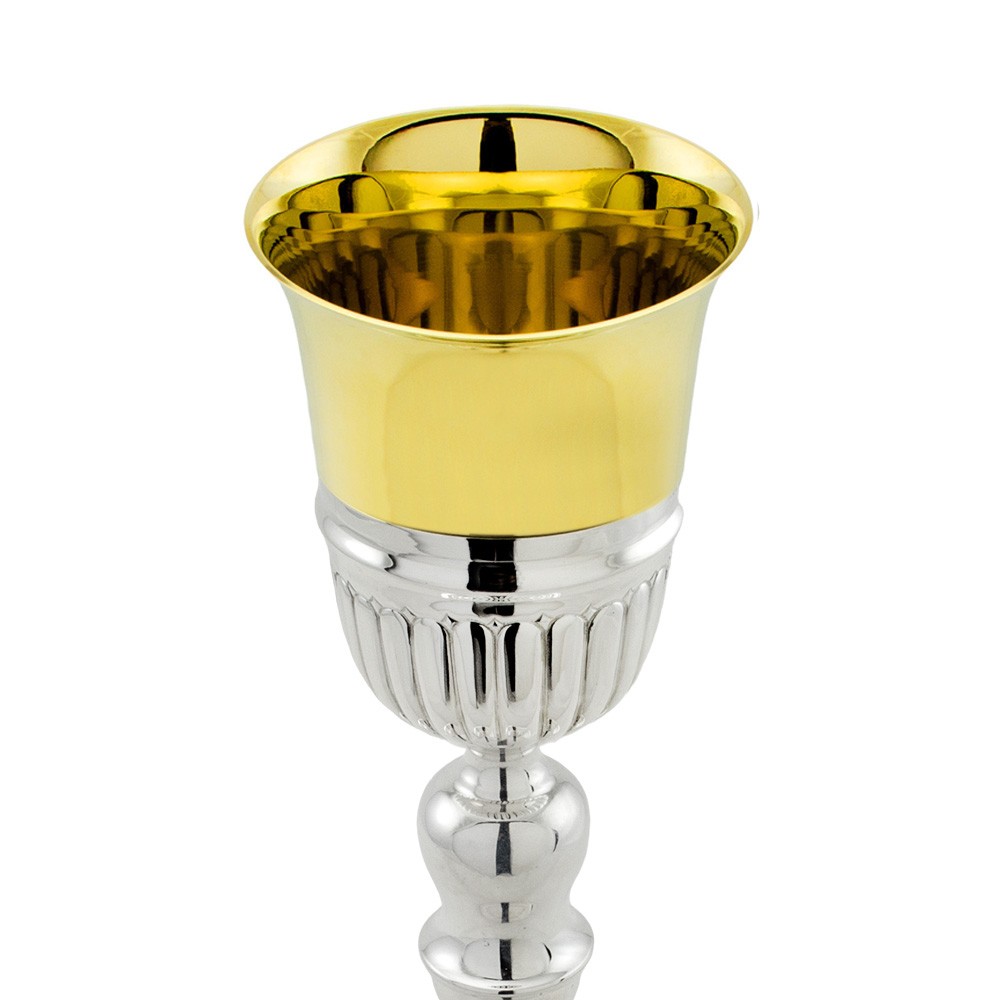 Chalice in 24k golden brass with antique silver node, h 20 cm.