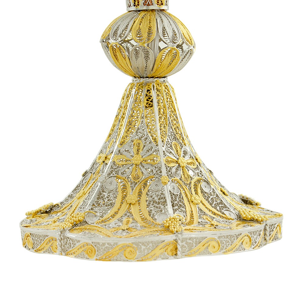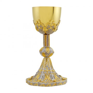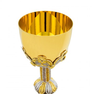 Chalice and Ciborium in 24k gold-plated brass with floral base.