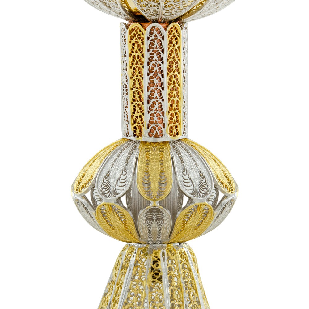 Chalice in 24k golden brass with antique silver node, h 20 cm.