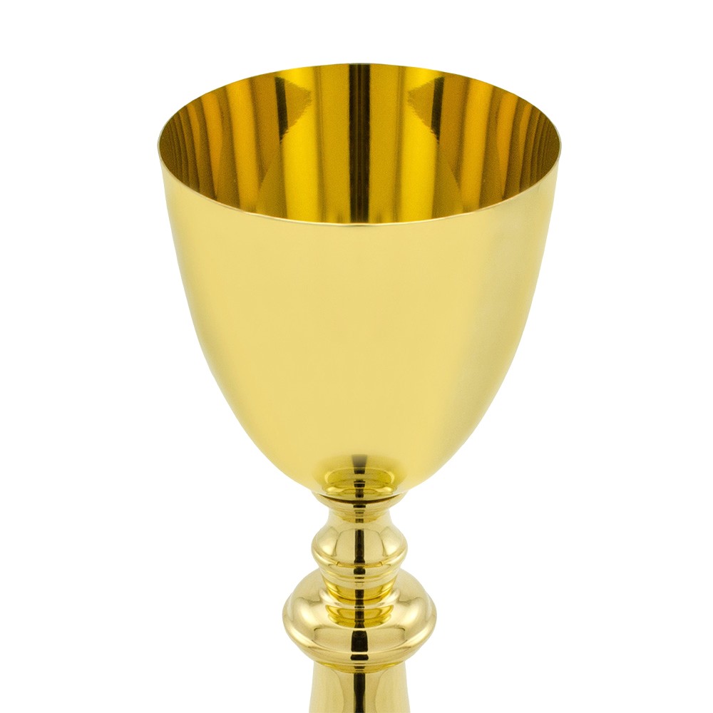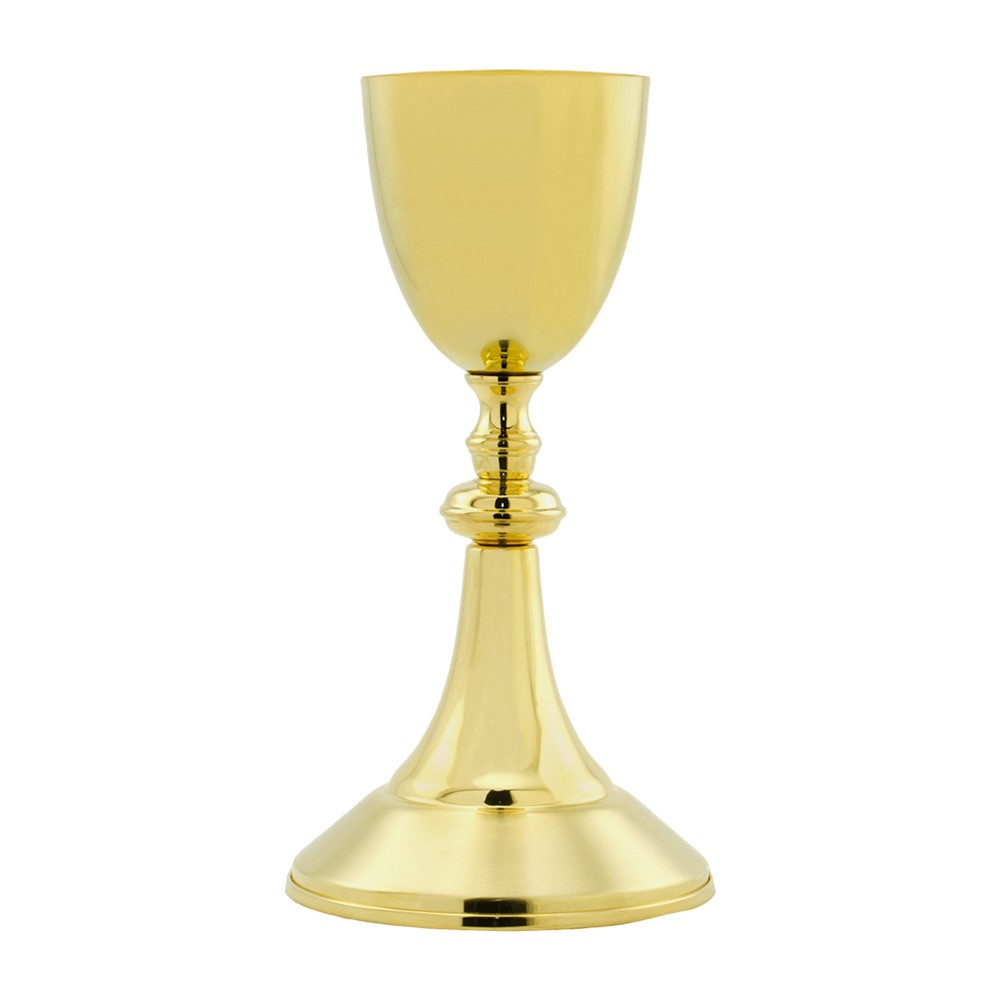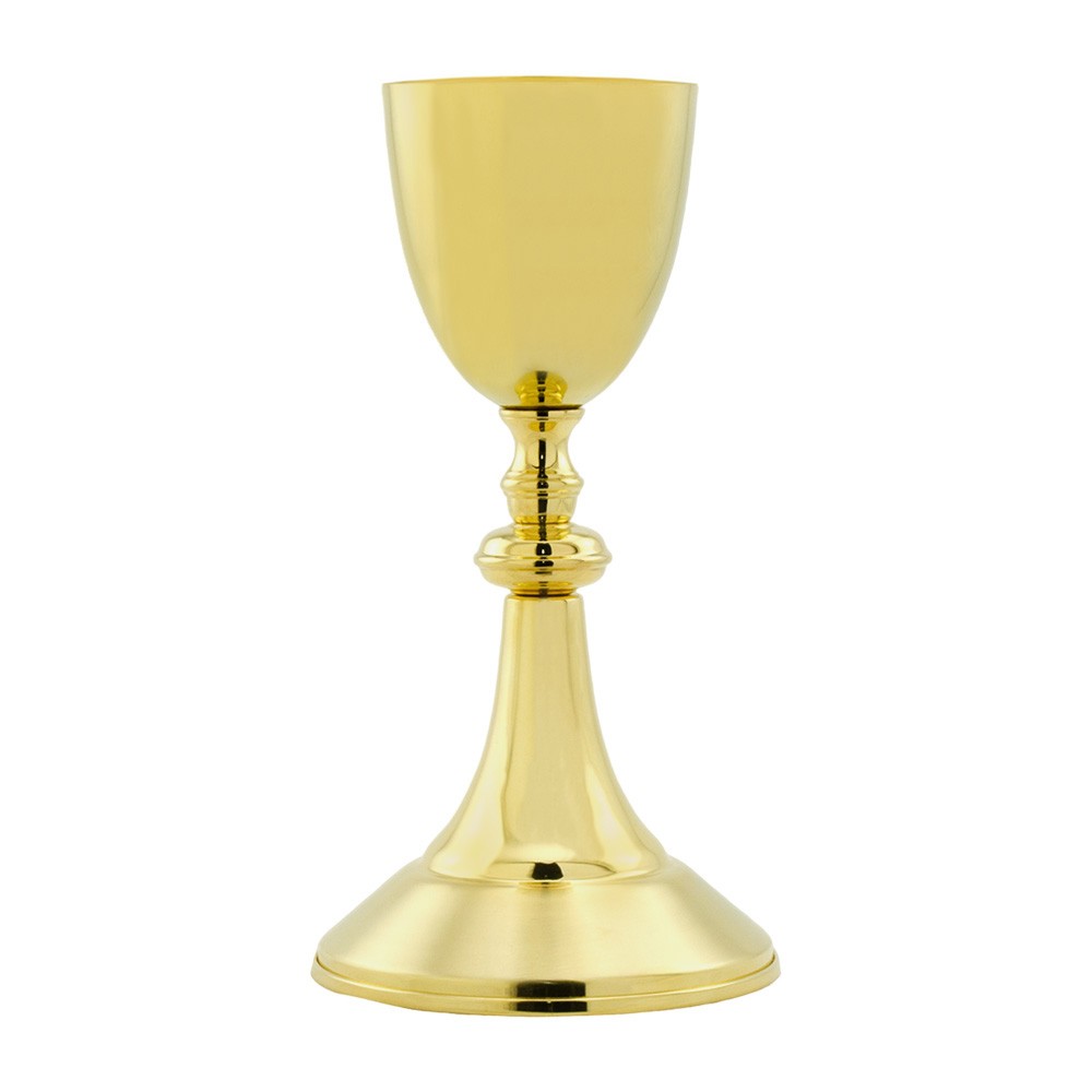 Complete set of chalice and ciborium in two-tone brass with plain node.