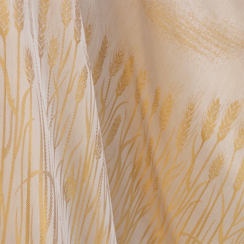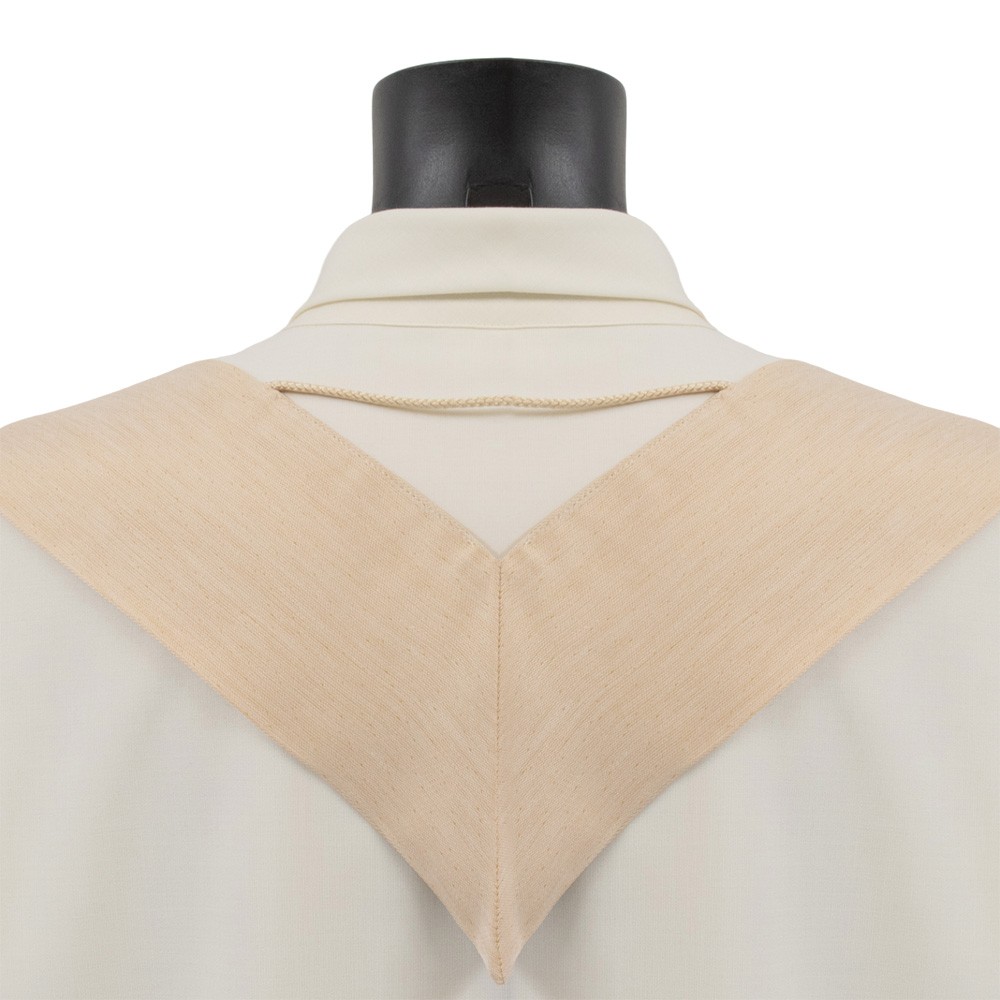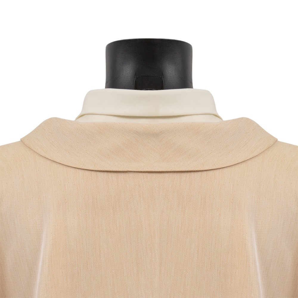 Priest chasuble of ivory color with round neck, made of light fabric in pure cotton.