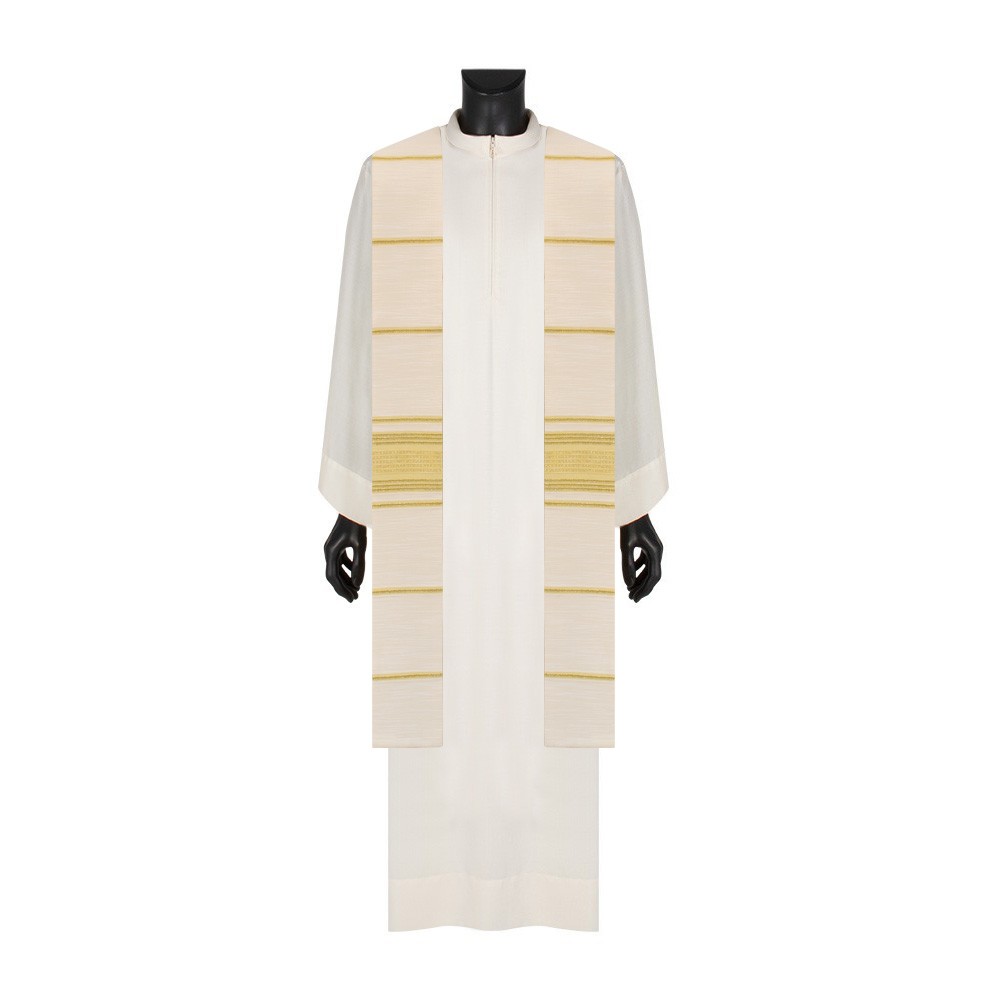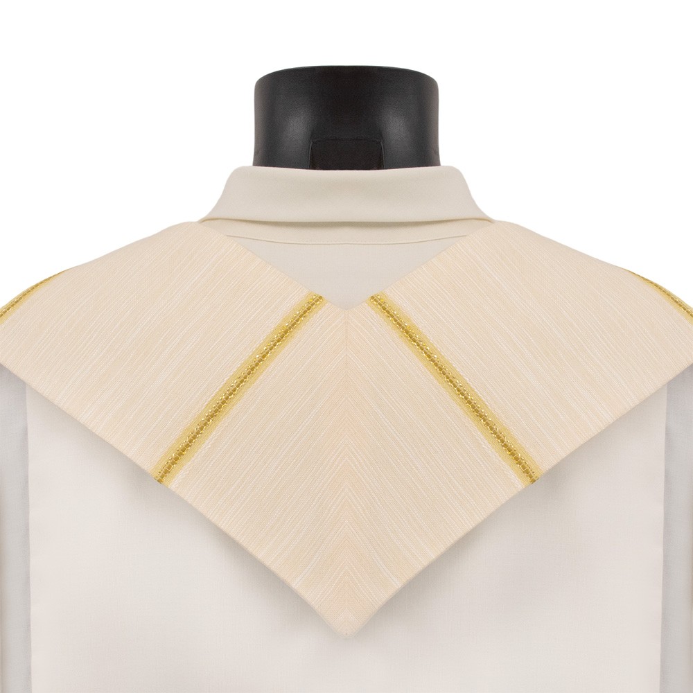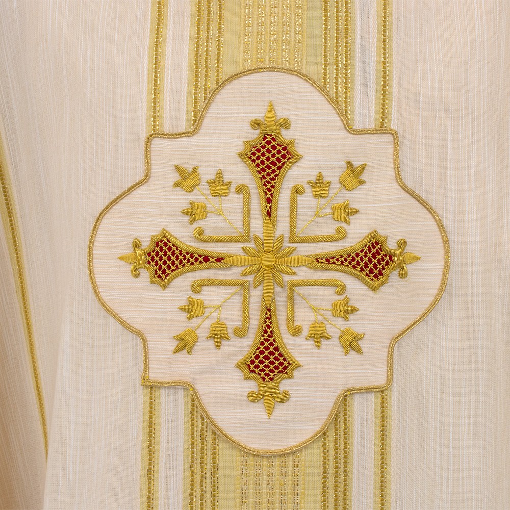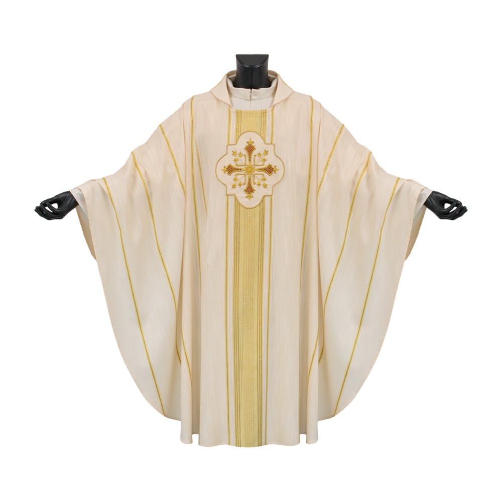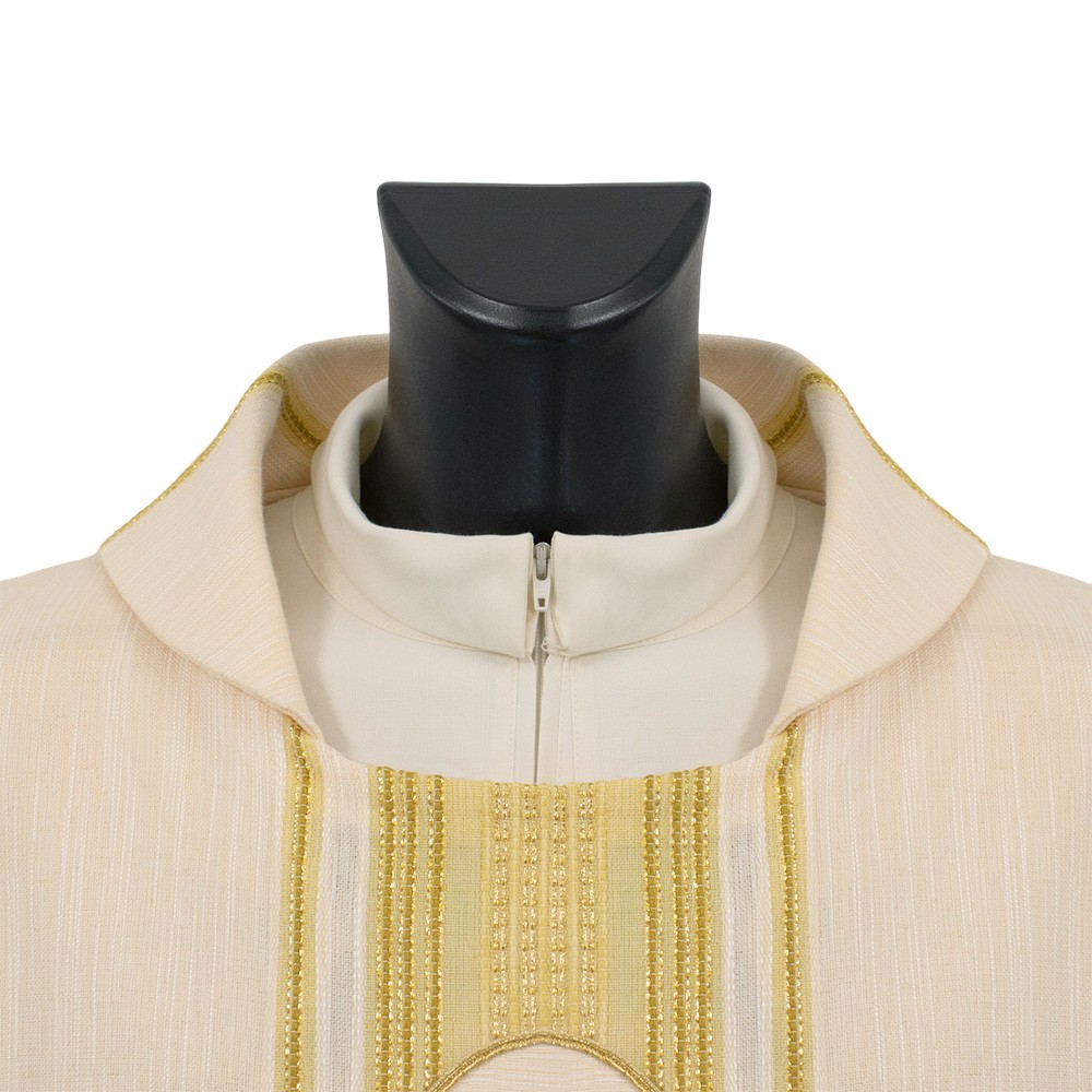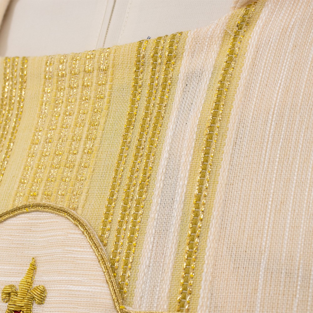 Priest chasuble of ivory color made of soft fabric blend of pure wool and trevira. This lightweight and breathable fabric is suitable for the summer season as well.