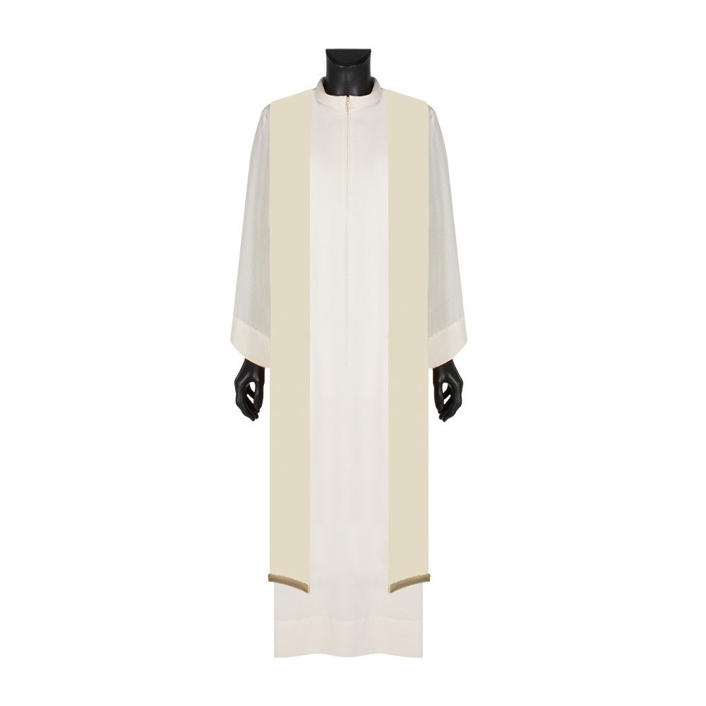 Sacred vestment entirely designed and handcrafted in our tailoring workshop. Our manufacturing process is carried out using excellent quality fabrics and yarn, which are enriched with ornaments and trimmings of various shapes and colors, in order to ensure comfort and refinement.