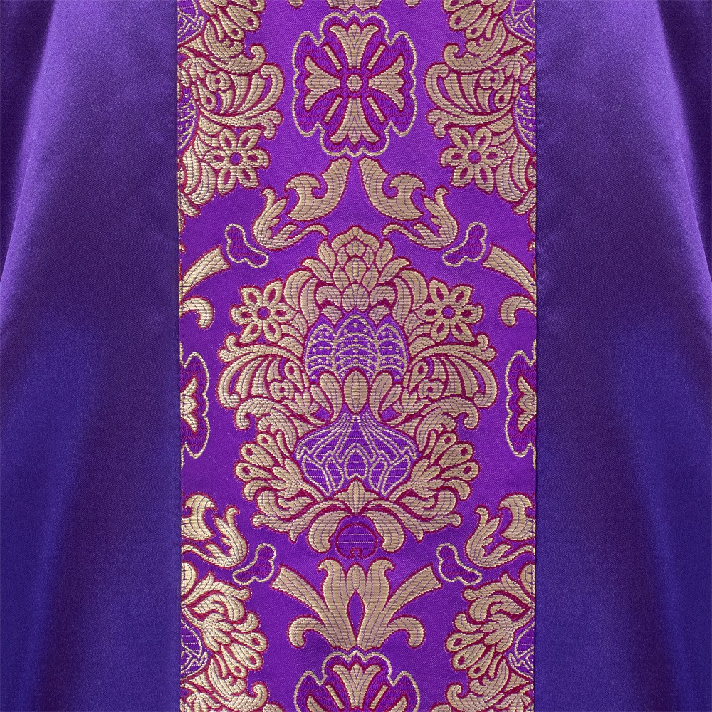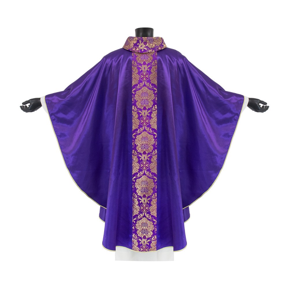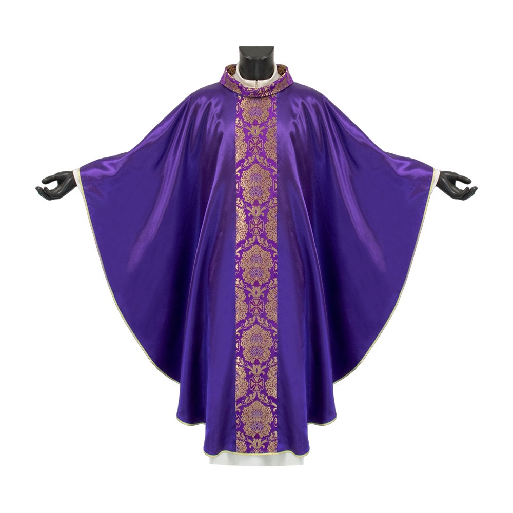 This vestment features a comfortable cowl neck and decorated orphrey in elegant brocade satin fabric.