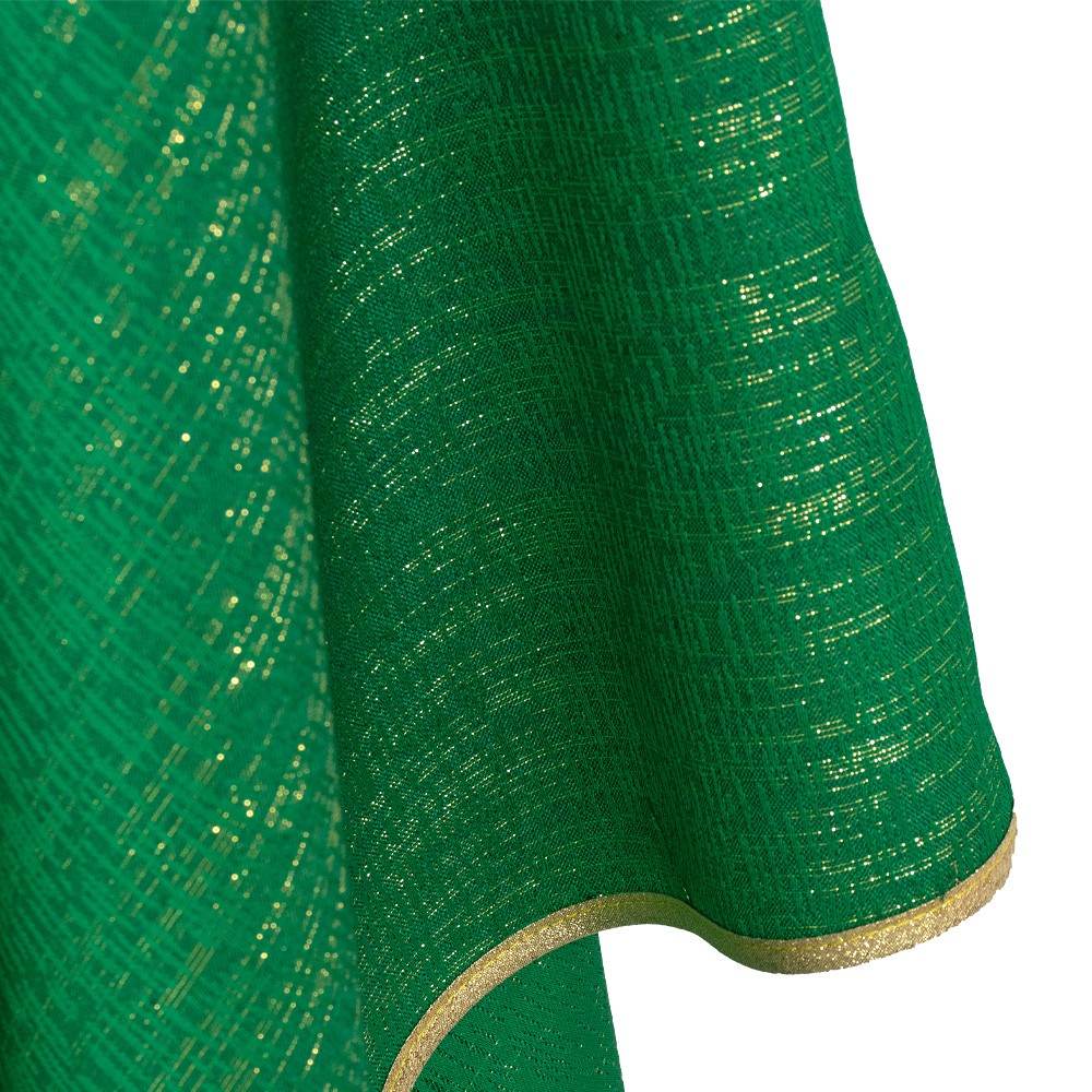 Along the contour of the chasuble is a golden bias binding which completes the stitching.