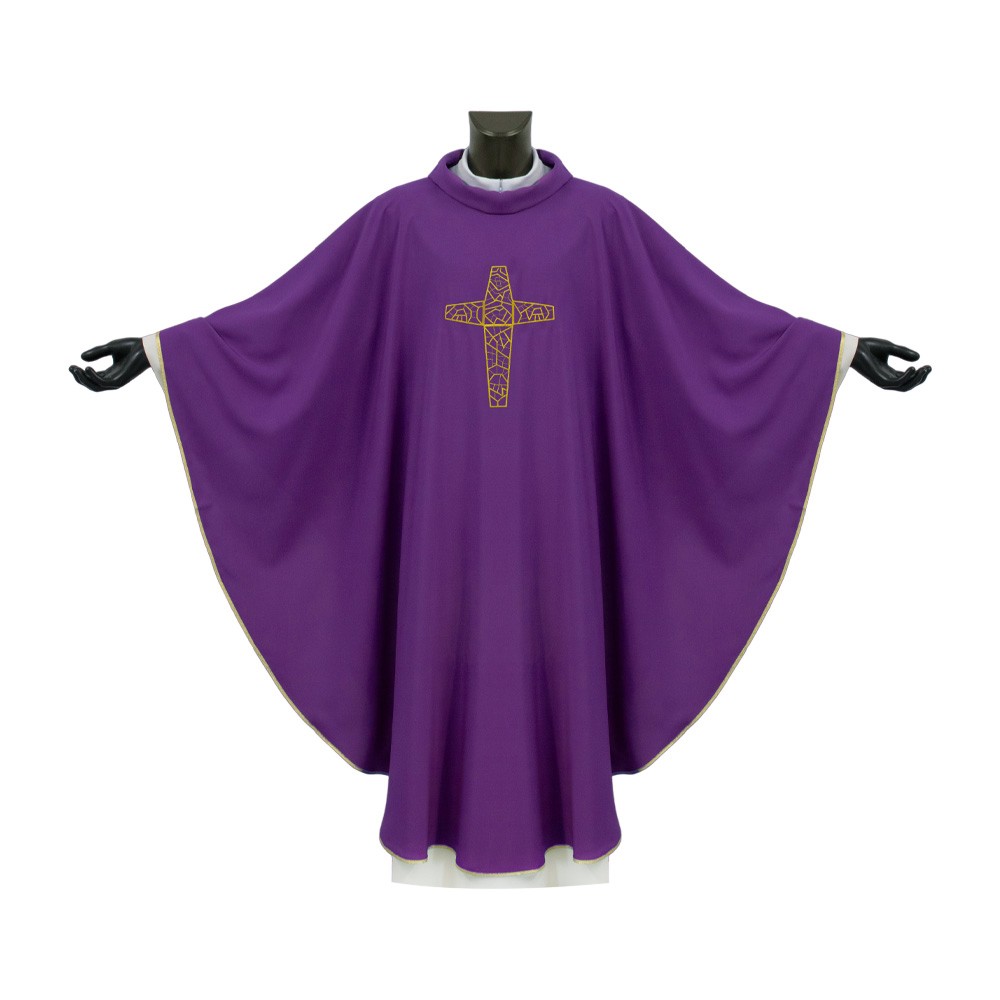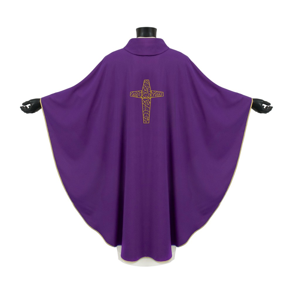 Purple chasuble with cross embroidery, made of fresh and durable polyester.