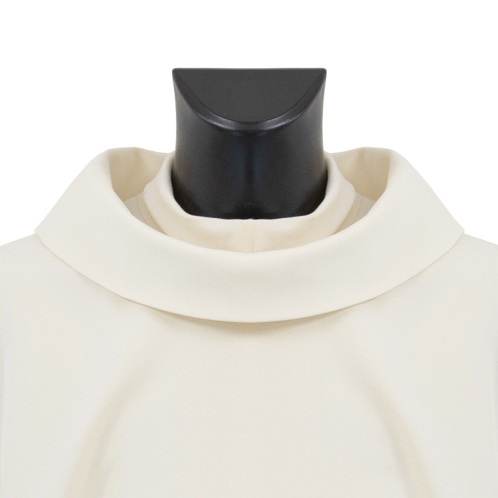 Chasuble with round neck, loose cut and cloak in wool blend fabric.