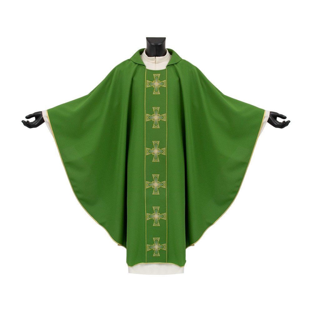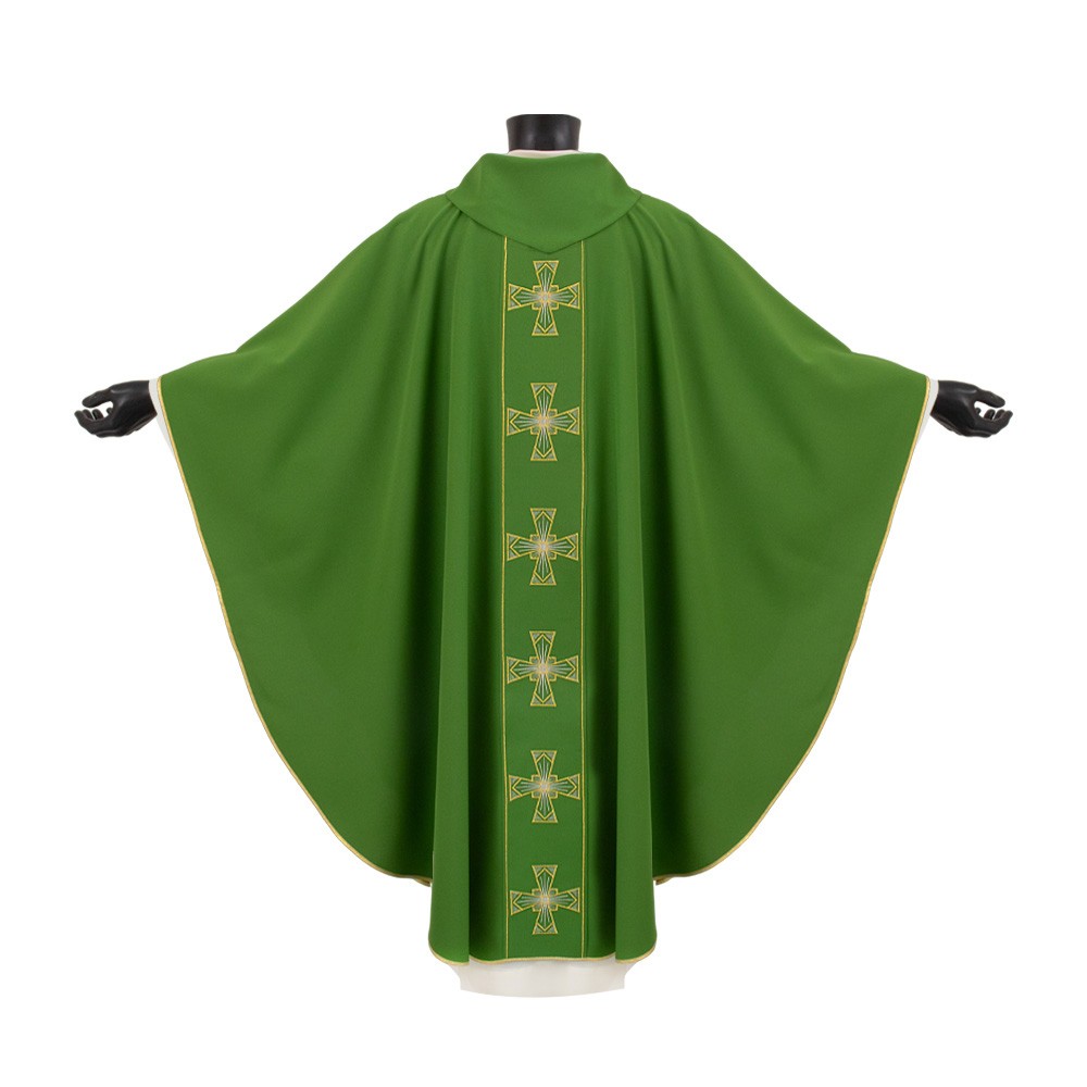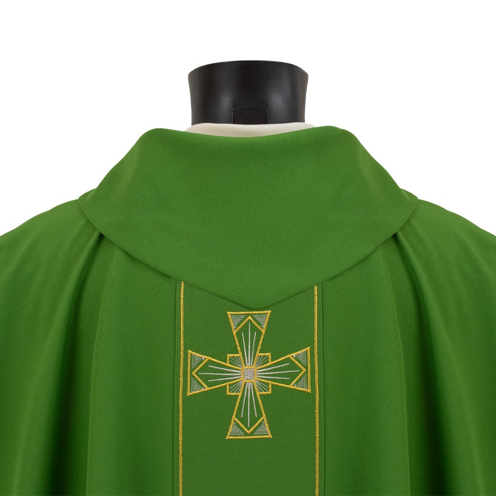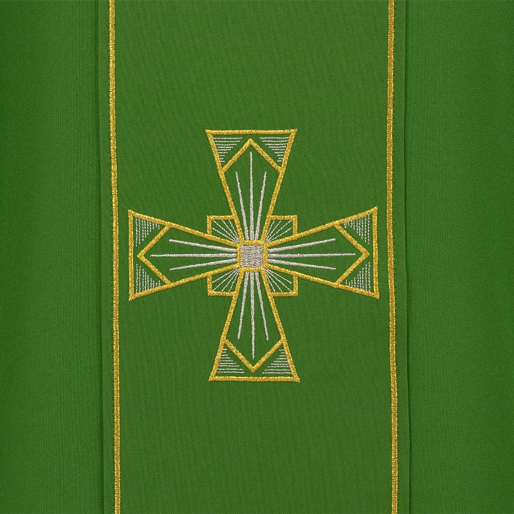 The embroidery on this vestment is accurately made by machine using looms and yarns of excellent quality.
