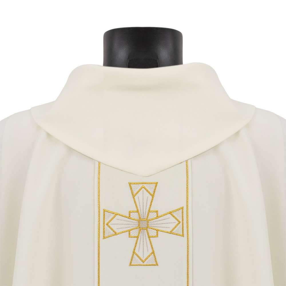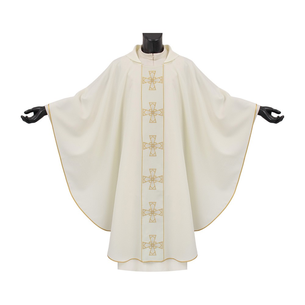 The embroidery on the orphrey depicts golden crosses and is accurately made by machine using yarn of excellent quality.