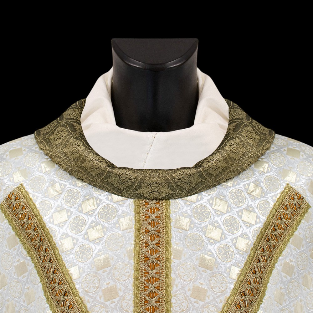 A refined priestly chasuble designed and crafted by the renowned liturgical tailoring house X REGIO.