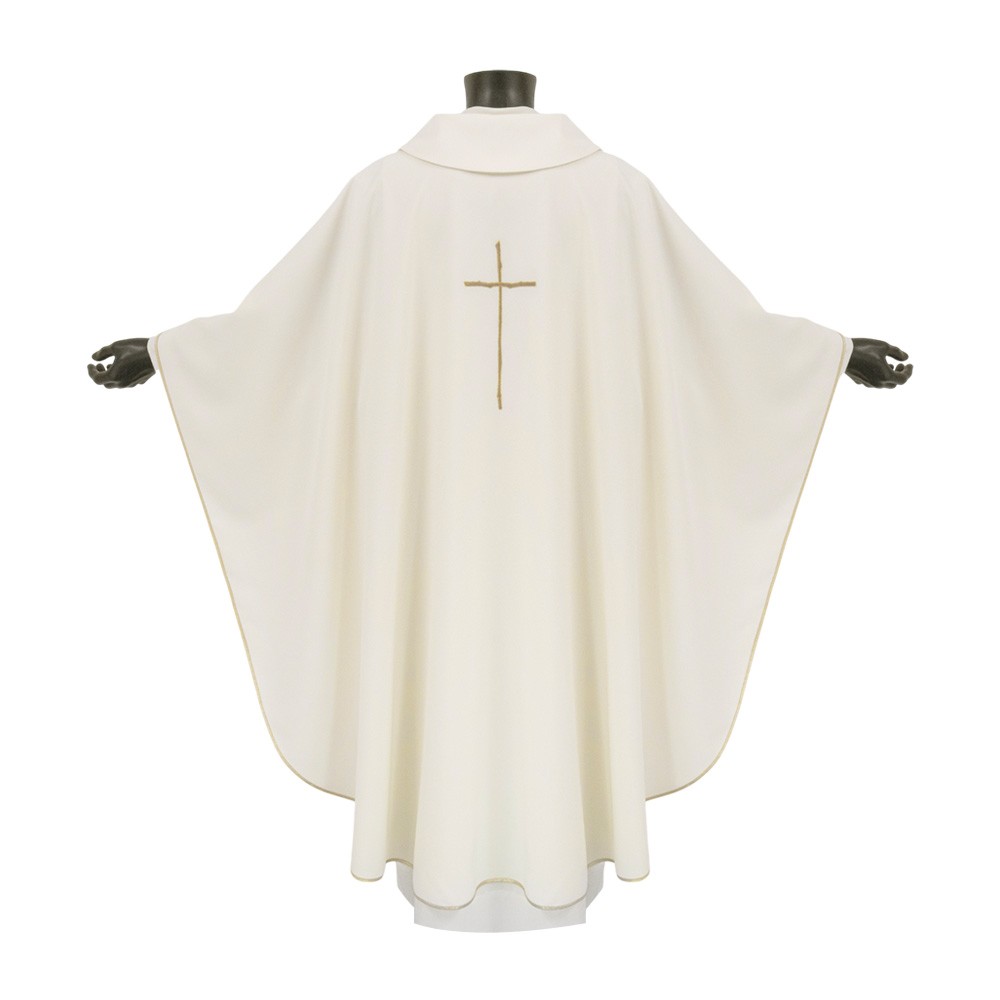Chasuble with custom machine embroidery, made of lightweight and breathable polyester fabric.