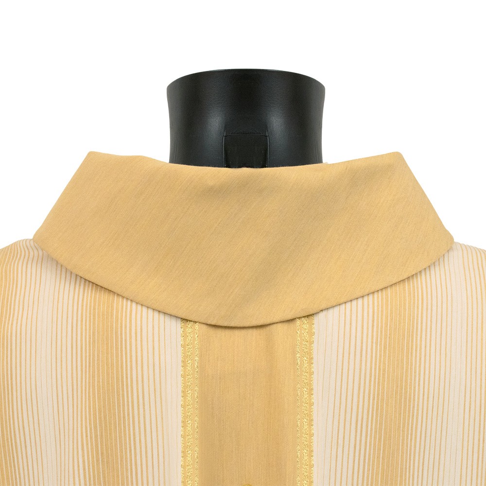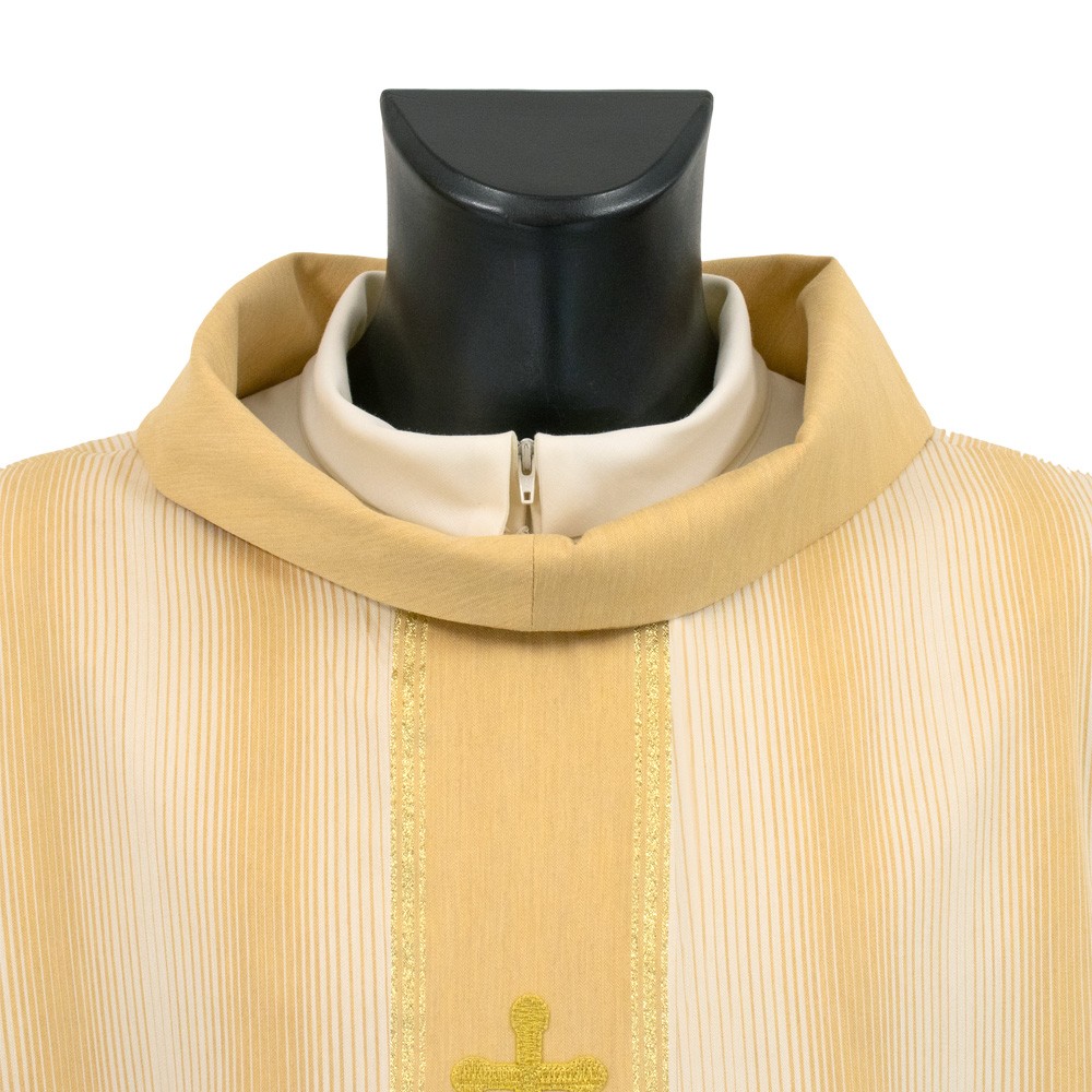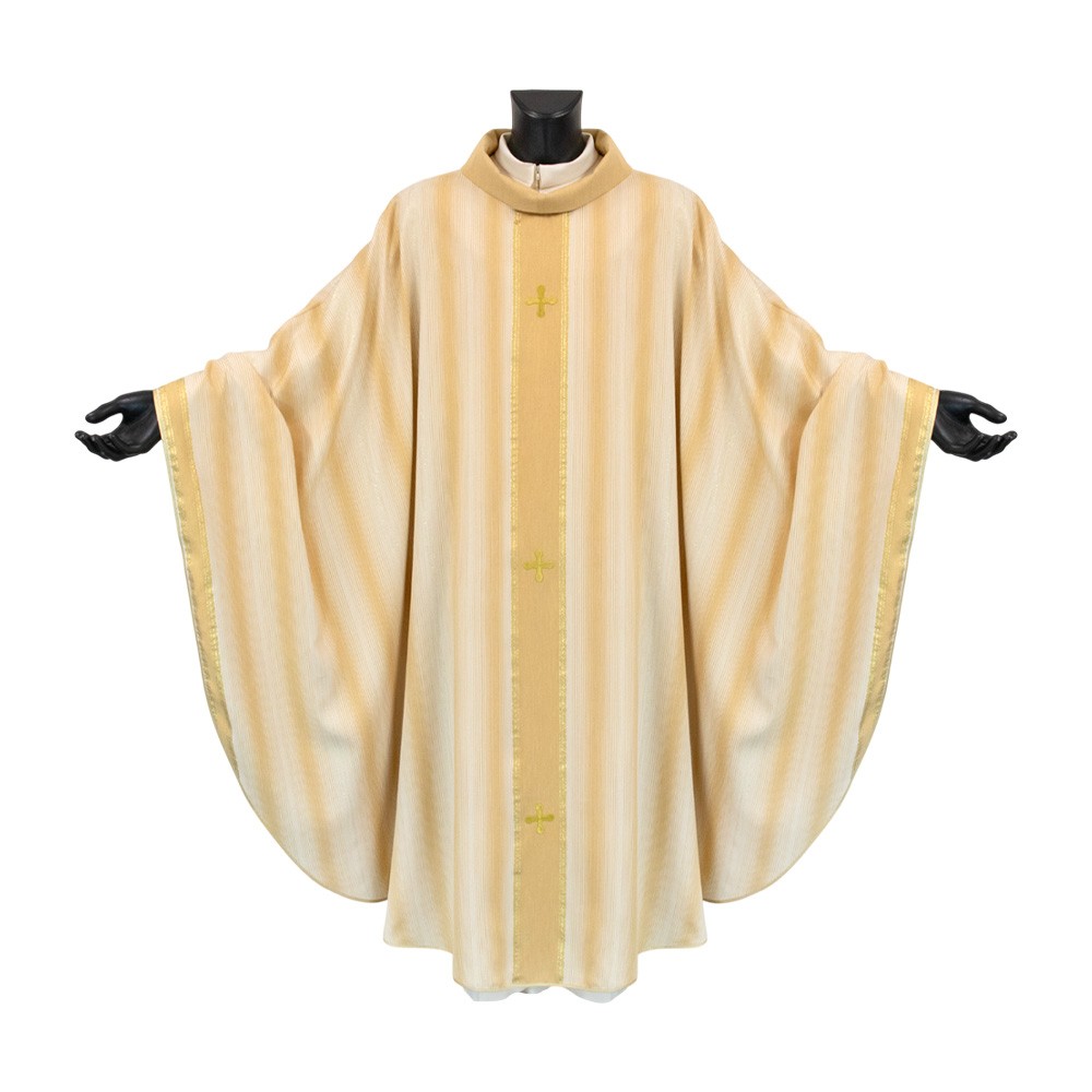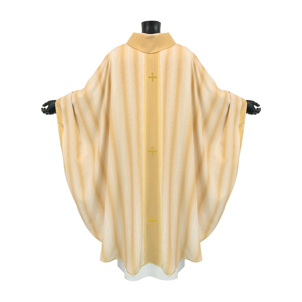 Chasuble made of blended fabric with gold embroidered crosses. Model with roll collar and matching stole included.
