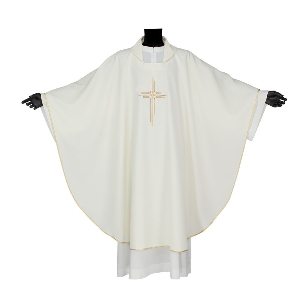 Guaranteed Shipping in 24-48 hChasuble made of blended fabric with gold embroidered crosses. Model with roll collar and matching stole included.