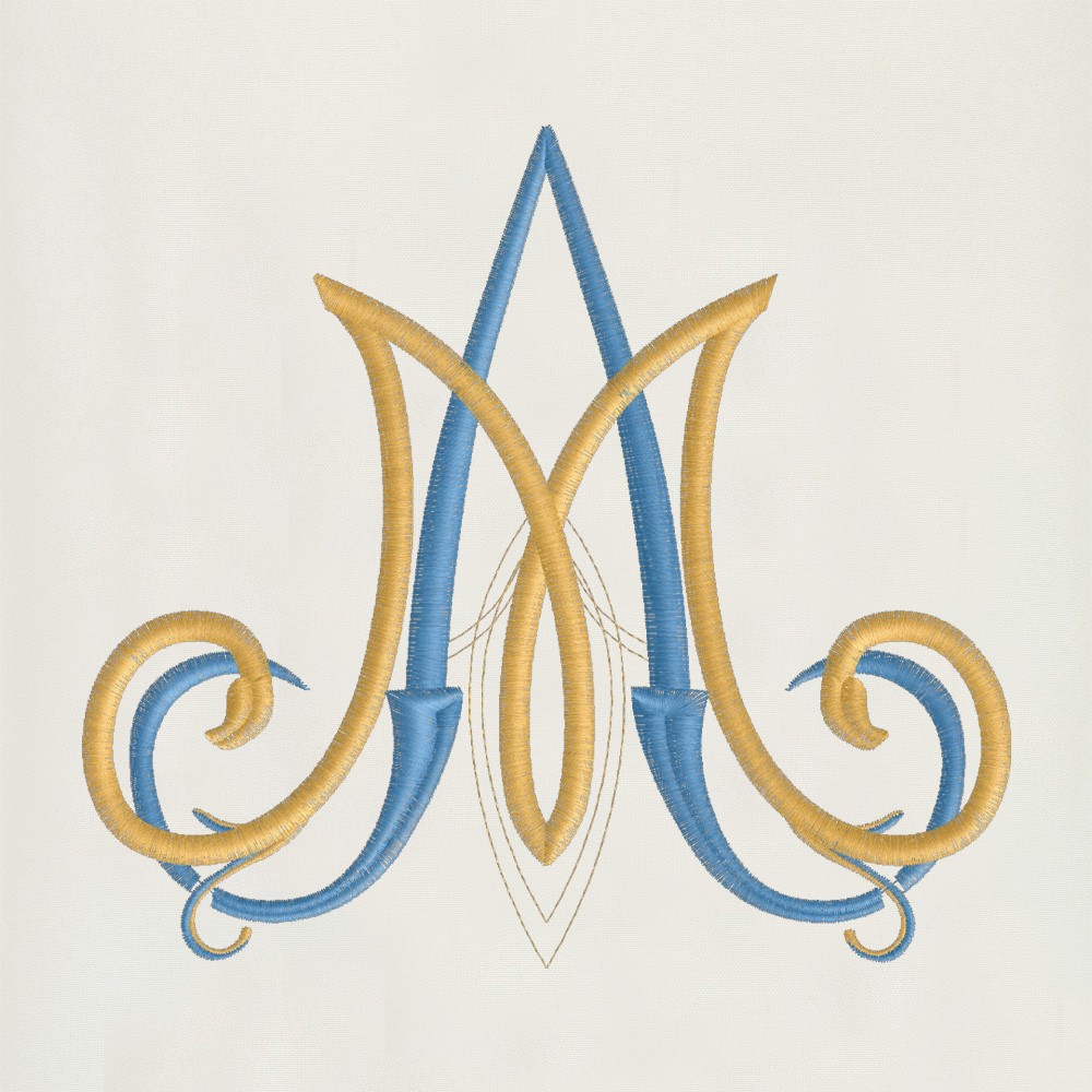 Embroidered chasuble with Marian symbol.
