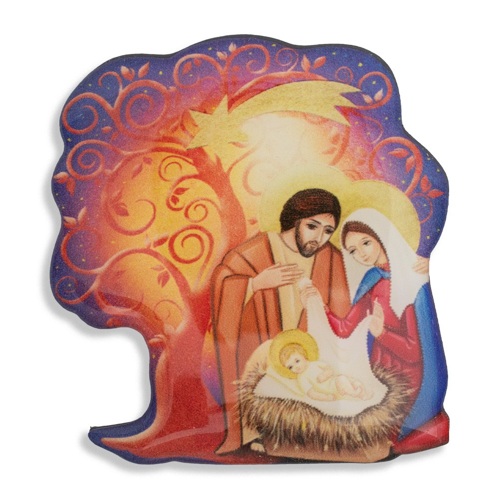 Magnet shaped like the Tree of Life with image of the Nativity.