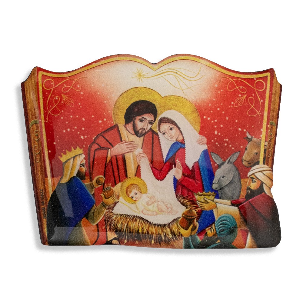 Magnet with decorated image of the Nativity and the Three Wise Men.