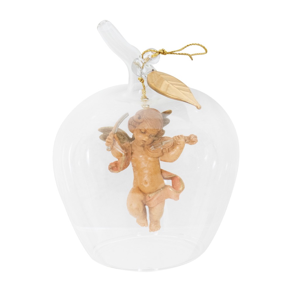 Blown glass ornament featuring a charming Fontanini angel playing the violin.