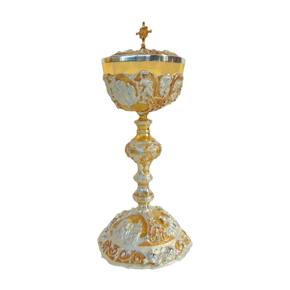 Chalice and Ciborium in gold and silver-plated brasse Pisside in ottone oro e argento.