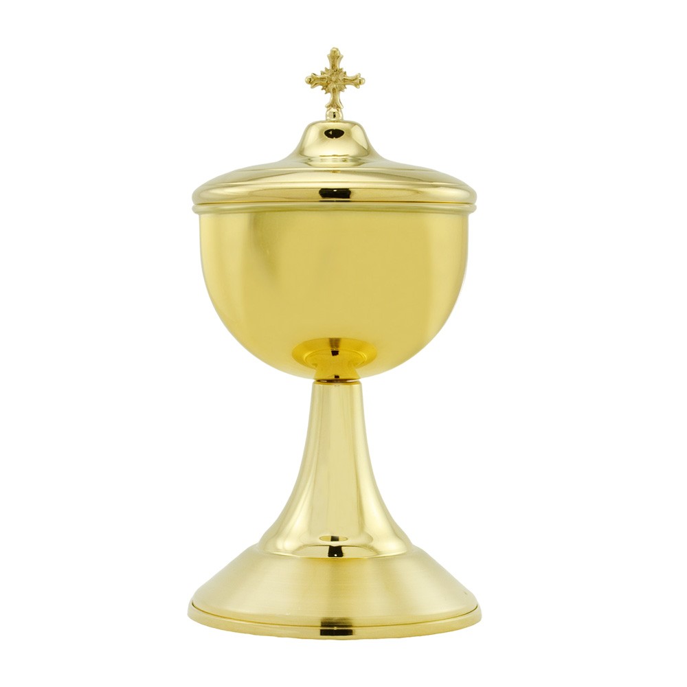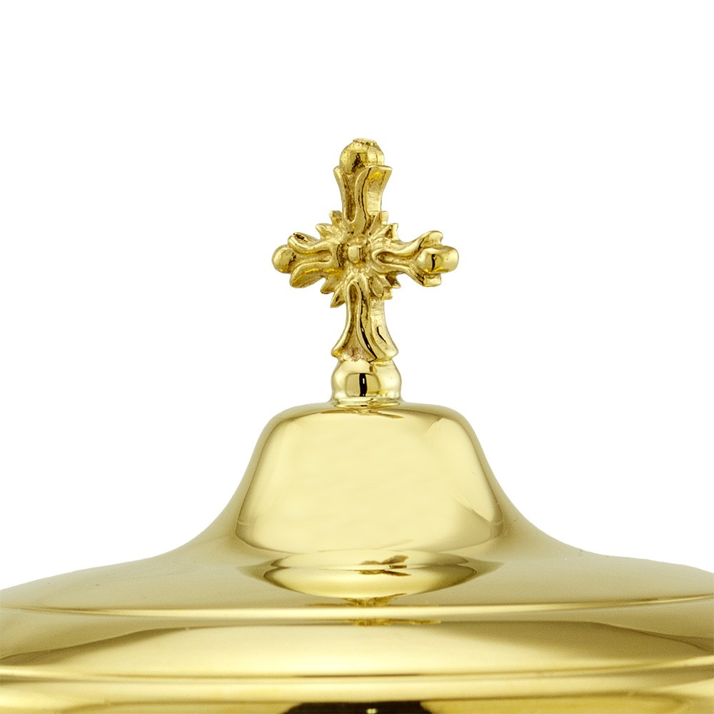 Chalice and Ciborium in gold-plated brass with Baroque cross.
