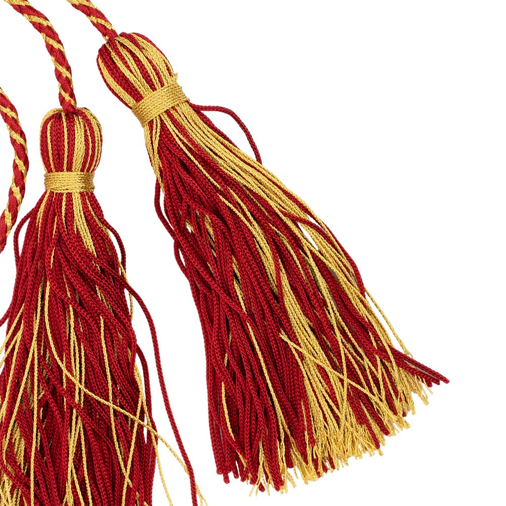 The cord is complete with two tassels made of shiny gold threads.