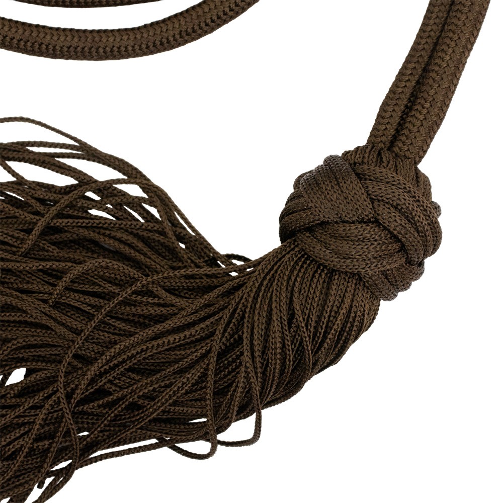 Brown cord for pectoral cross, crafted with Solomon braid, two loops, and gold-colored metal clasp.