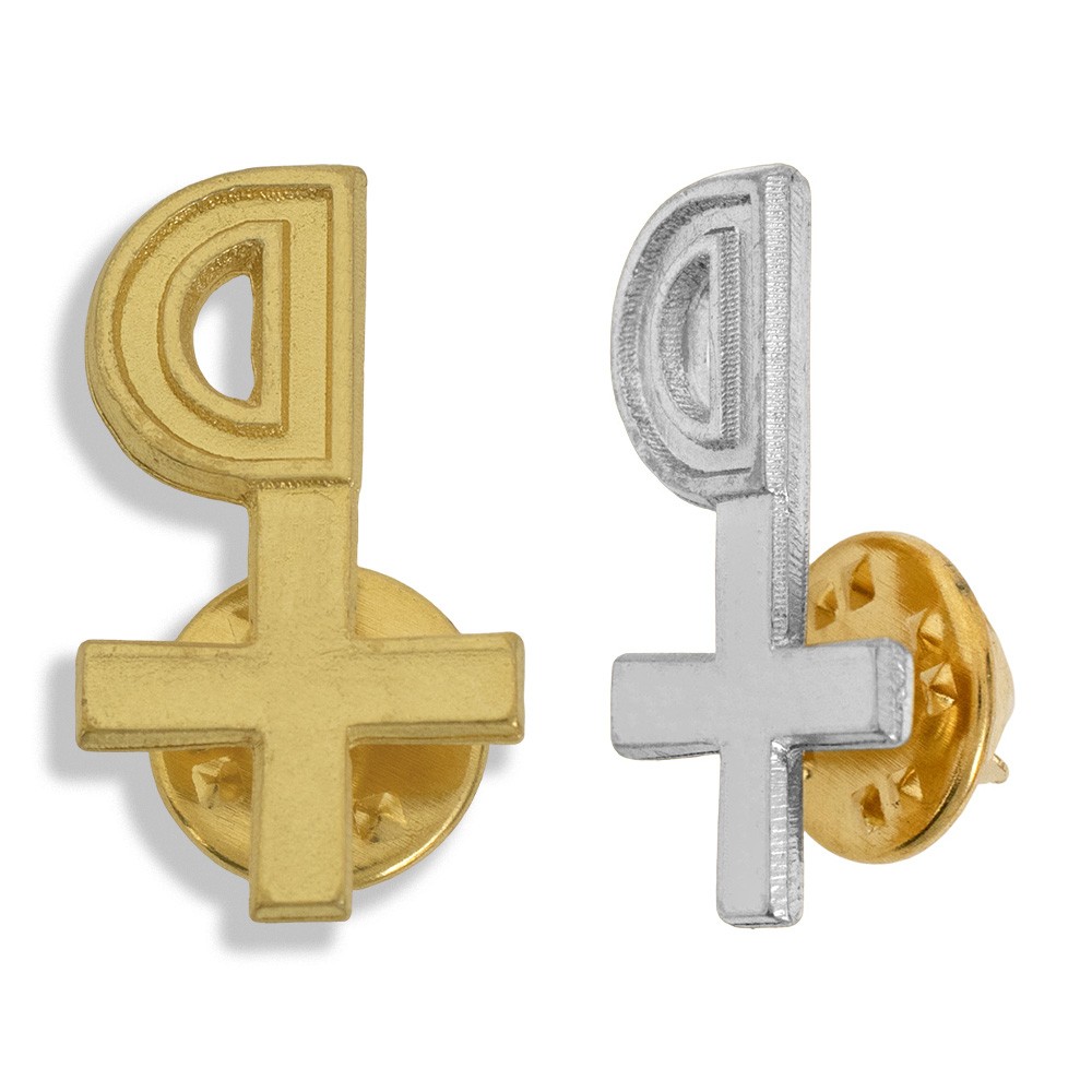 Clergyman cross pin for deacons made of metal with gold or silver finish.