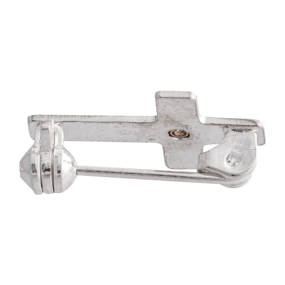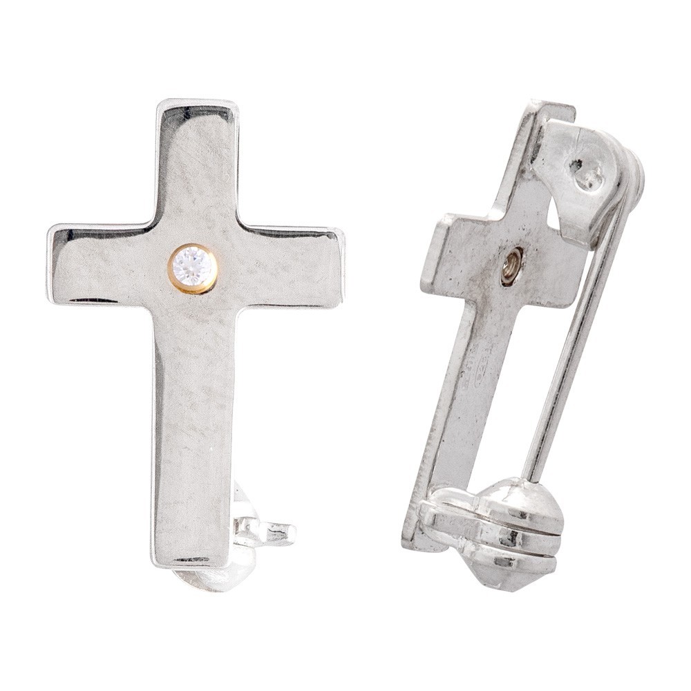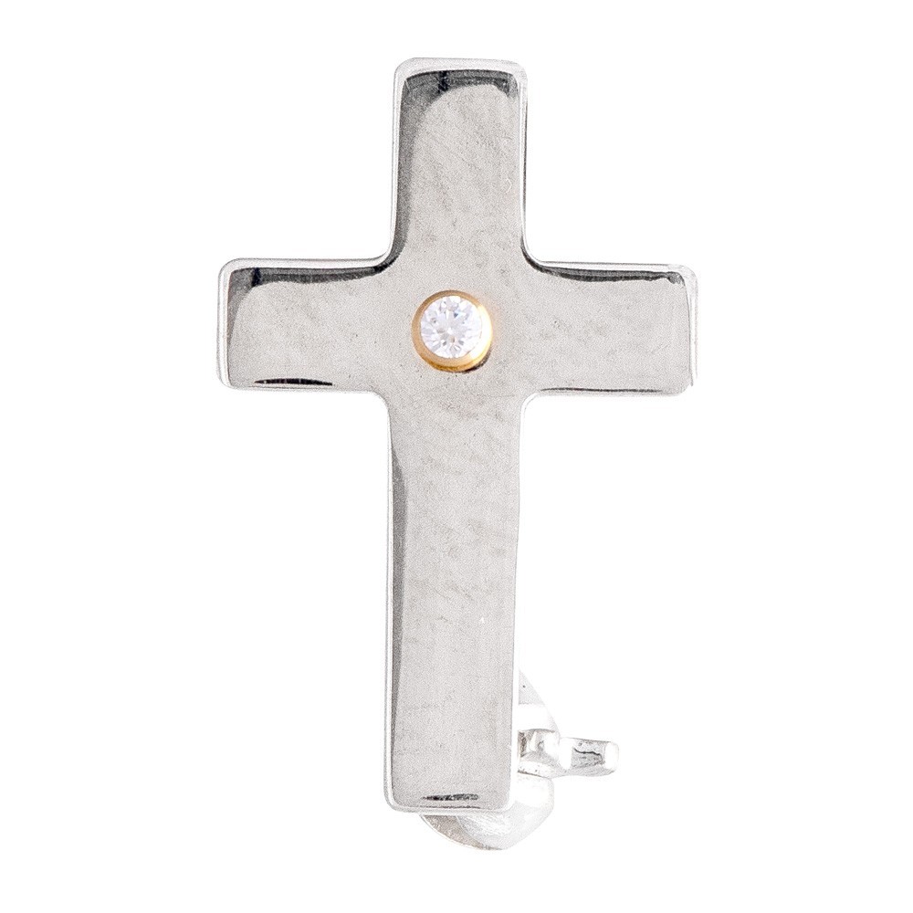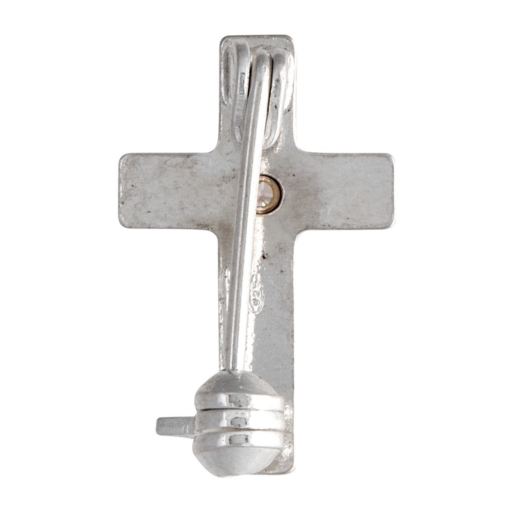 This cross is made of 925 silver. It is equipped with a pin and enriched by a beautiful zircon. Size: 1.8x1.2 cm. Entirely made in Italy.